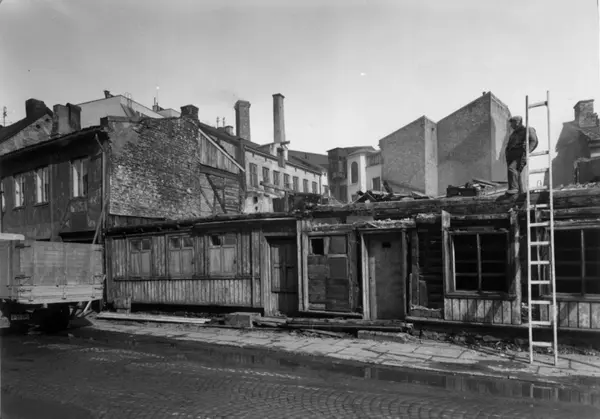 Rødfyllgata 20, Oslo 1954. Under riving. Sett fra gata.