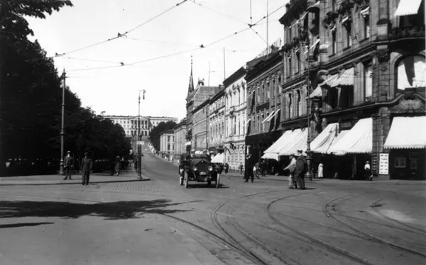 Karl Johans gate, Oslo 1920. Fra Rosenkrantz' gate mot Slottet.