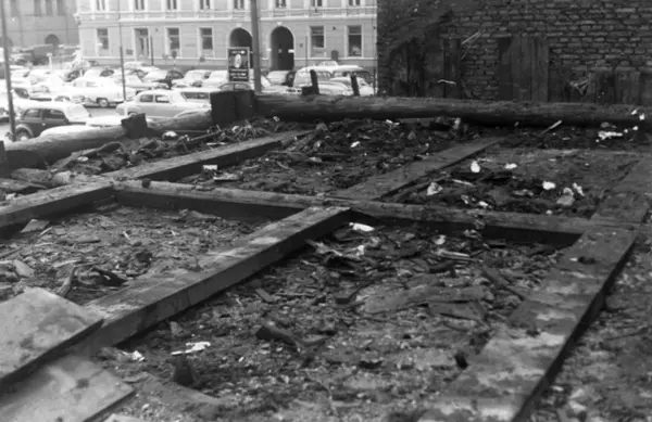 Fred Olsens gate 13 under nedtaging for flytting til Norsk Folkemuseum.