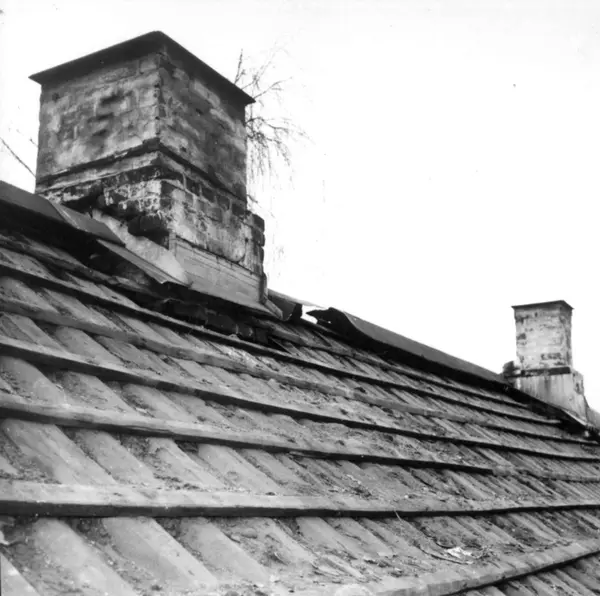 Fra rivingen av Holmens gate 5 i Oslo i Pipervika.Hele denne gata forsvant med Rådhusreguleringen. Bakgården i Holmens gate 5 er bevart på Norsk Folkemuseum, som bygning nr. 231.