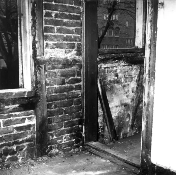 Fra rivingen av Holmens gate 5 i Oslo i Pipervika.Hele denne gata forsvant med Rådhusreguleringen.Bakgården i Holmens gate 5 er bevart på Norsk Folkemuseum, som bygning nr. 231.