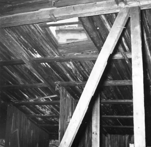 Fra rivingen av Holmens gate 5 i Oslo i Pipervika.Hele denne gata forsvant med Rådhusreguleringen. Bakgården i Holmens gate 5 er bevart på Norsk Folkemuseum, som bygning nr. 231.
