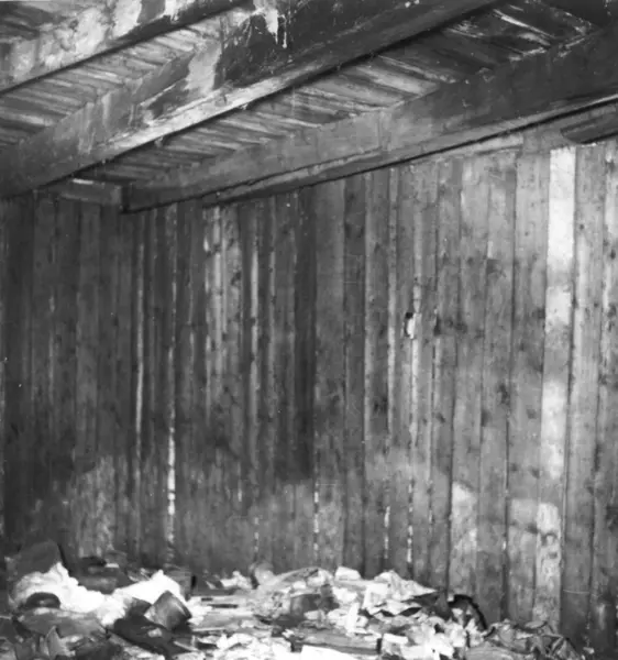 Fra rivingen av Holmens gate 5 i Oslo i Pipervika.Hele denne gata forsvant med Rådhusreguleringen. Bakgården i Holmens gate 5 er bevart på Norsk Folkemuseum, som bygning nr. 231.