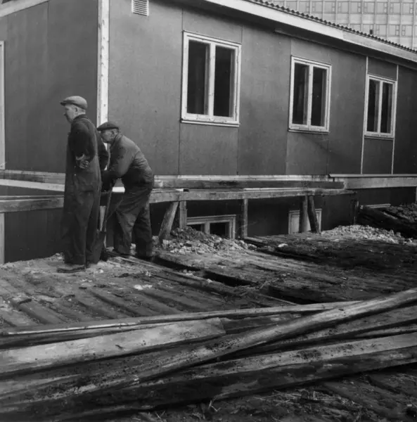 Fra rivingen av Holmens gate 5 i Oslo i Pipervika.Hele denne gata forsvant med Rådhusreguleringen. Bakgården i Holmens gate 5 er bevart på Norsk Folkemuseum, som bygning nr. 231.
