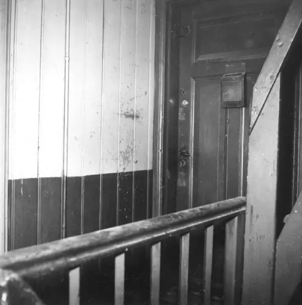 Fra rivingen av Holmens gate 5 i Oslo i Pipervika.Hele denne gata forsvant med Rådhusreguleringen.Bakgården i Holmens gate 5 er bevart på Norsk Folkemuseum, som bygning nr. 231.