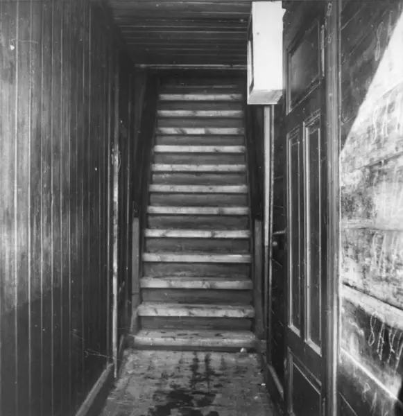 Fra rivingen av Holmens gate 5 i Oslo i Pipervika.Hele denne gata forsvant med Rådhusreguleringen.Bakgården i Holmens gate 5 er bevart på Norsk Folkemuseum, som bygning nr. 231.