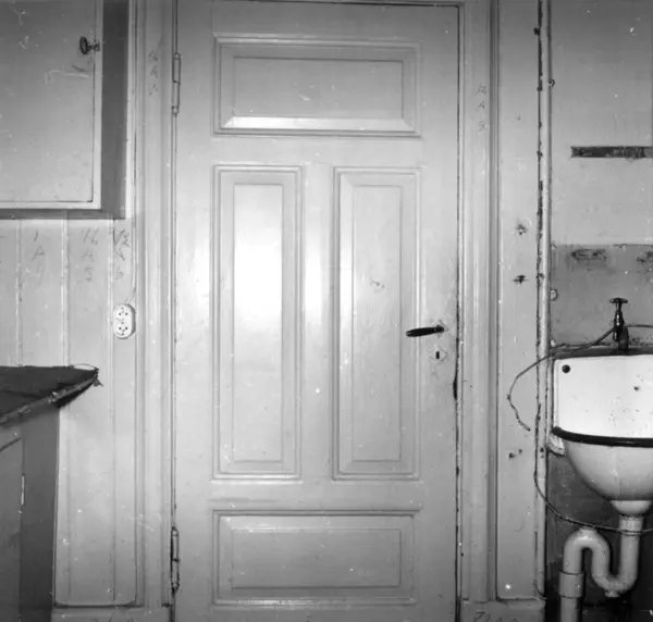 Fra rivingen av Holmens gate 5 i Oslo i Pipervika.Hele denne gata forsvant med Rådhusreguleringen.Bakgården i Holmens gate 5 er bevart på Norsk Folkemuseum, som bygning nr. 231.
