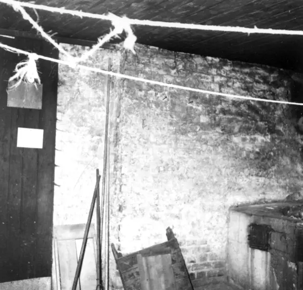Fra rivingen av Holmens gate 5 i Oslo i Pipervika.Hele denne gata forsvant med Rådhusreguleringen.Bakgården i Holmens gate 5 er bevart på Norsk Folkemuseum, som bygning nr. 231.