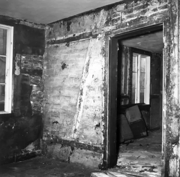 Fra rivingen av Holmens gate 5 i Oslo i Pipervika.Hele denne gata forsvant med Rådhusreguleringen.Bakgården i Holmens gate 5 er bevart på Norsk Folkemuseum, som bygning nr. 231.