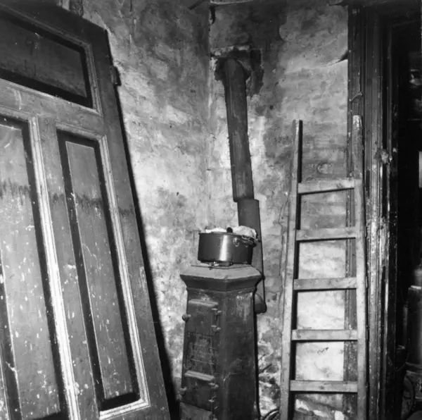 Fra rivingen av Holmens gate 5 i Oslo i Pipervika.Hele denne gata forsvant med Rådhusreguleringen.Bakgården i Holmens gate 5 er bevart på Norsk Folkemuseum, som bygning nr. 231.