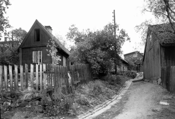 Flisberget 2, Oslo 1959. Smug med småhusbebyggelse og hager. Nå NF.