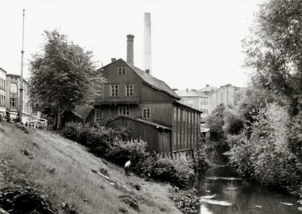 Nordre gate 3, Grünerløkka, Oslo 1961. Trebygning som ligger ned mot Akerselva.