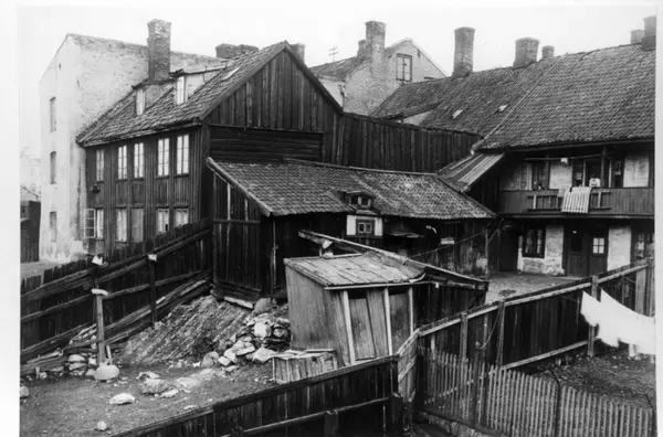 Vinkelgaten, Oslo. Bakgårder sett fra Bakkegaten mot Vinkelgaten.