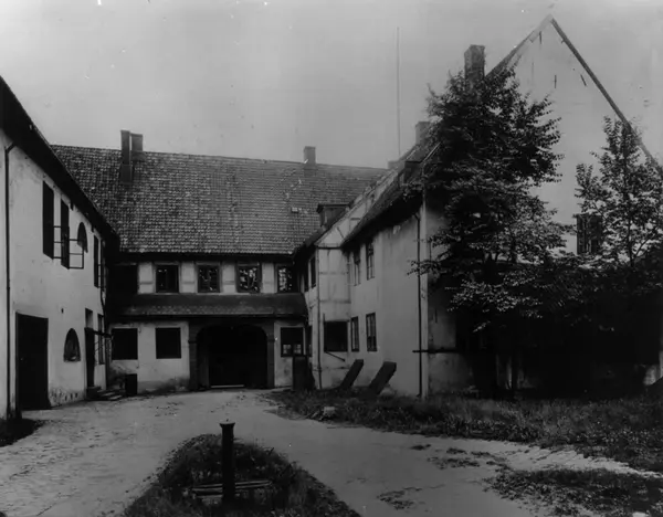 Dronningens gate 15, Oslo. Gårdsrommet med stortingssalens vinduer til venstre 2. et.