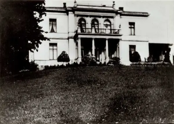 Skøyen Hovedgård, Oslo 1840-92. Hovedbygningen sett fra hagen.