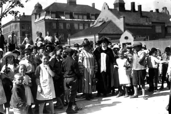 Inga Bjørnson på utflukt med barn fra Oslo.