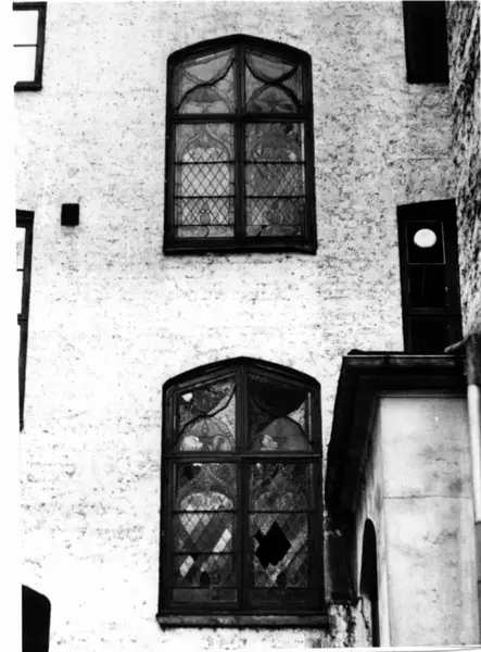 Kirkegata 25, Oslo 1960. Glassvindu. Eksteriør. Gårdsrom.