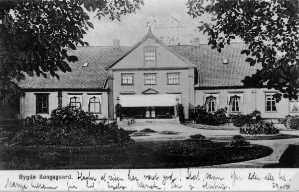 Bygdøy kongsgård, Oslo. Kortet er sendt 29.09.1906. Prospektkort av parken og hovedbygningen.