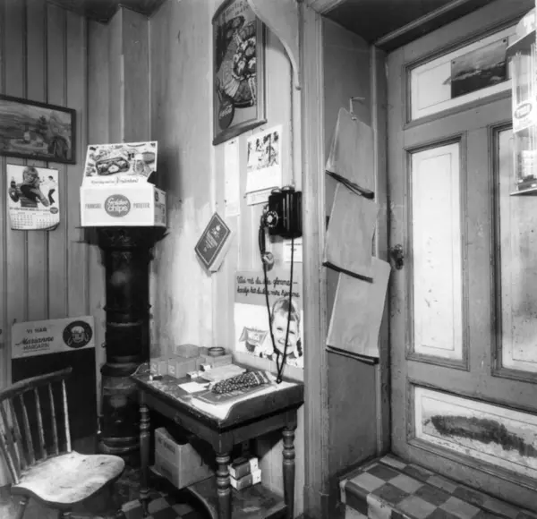 Johan N. Nordlies kolonialforretning, Vibes gate 13 i Oslo. Fotografert 1968. Butikken ble innredet i ca. 1900, kjøpt av Nordlie i 1921 og solgt til Johan Skarpholt i 1968. Det meste av inventaret ble kjøpt av Norsk Folkemuseum i 1968.