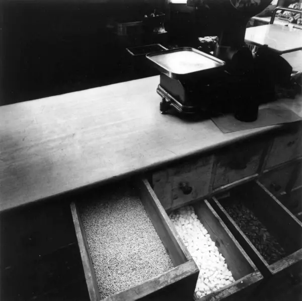 Johan N. Nordlies kolonialforretning, Vibes gate 13 i Oslo. Fotografert 1968. Butikken ble innredet i ca. 1900, kjøpt av Nordlie i 1921 og solgt til Johan Skarpholt i 1968. Det meste av inventaret ble kjøpt av Norsk Folkemuseum i 1968.