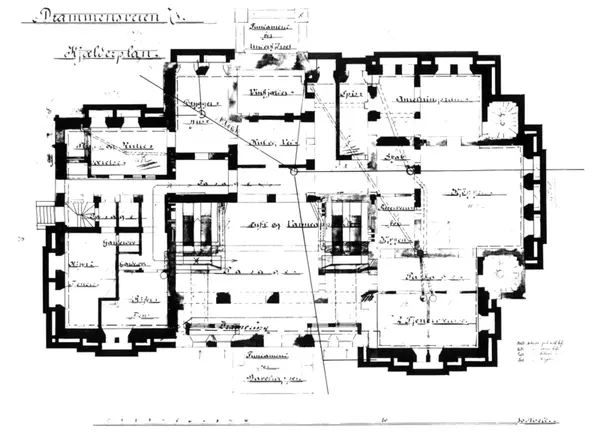 Videnskapsakademiet. Drammensveien 78, Oslo. Foto av tegning av kjeller. 1885. Arkitekt Herman Major Backer.