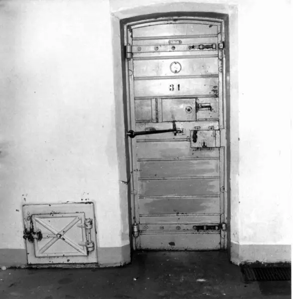 Oslo kretsfengsel, Møllergata 19, oppført 1866, fot. 1975. Celledør sett fra utsiden.