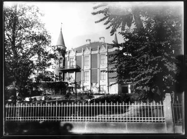 Josefines gate 13, Homansbyen, Oslo, oppført 1860. Hus med tårn og hage. Familien Hiorth var eiere av Josefines gate 13 og Kværner Brug, Oslo.