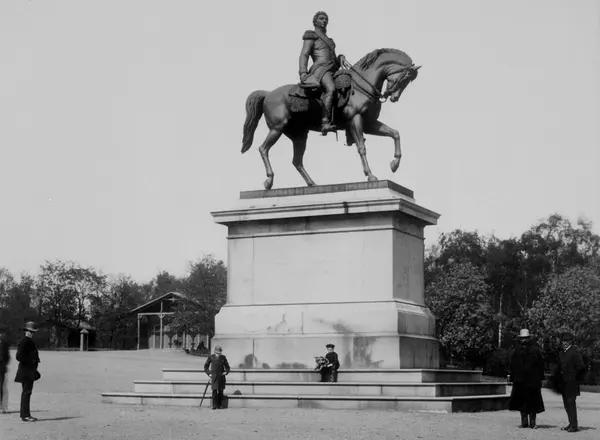 Karl Johan-monumentet, Slottsplassen, Oslo. Rytterstatue i bronse, laget av Brynjulf Bergslien, avslørt av Oscar 2. i 1875. Reist for midler innsamlet av Karl Johan-forbundet med tilskudd fra staten. Ant. del av Brødrene Brunskows serie norske landskapsbilder.