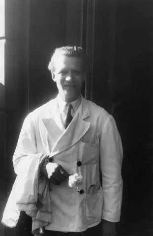 Fra Oslo under fredsdagene i 1945. Dagen for paraden den 9.juni. Mann i hvit jakke med en nellik i hånden foran slottet.