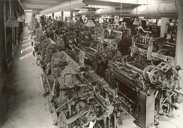 Produksjonslokale ved A/S Joh. Petersens Linvarefabrik. Veveriet. 2. etasje.