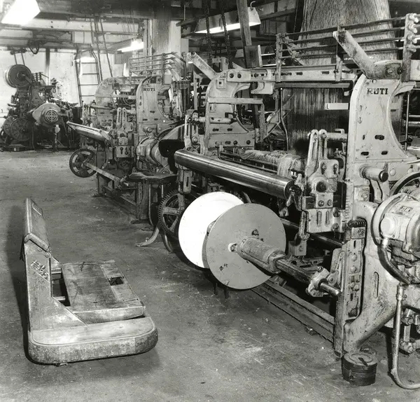 Veveriet ved Fortex A/S. Bomtralle og vevstoler.