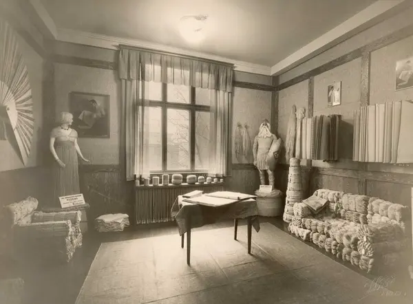 Fortex A/S. Utstillingslokale med utstillingsdukker og vareprøver fra Seilduksfrabrikken.