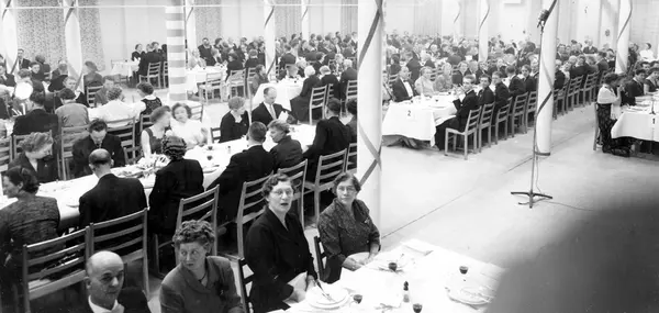 Christiania Seildugsfabriks jubileumsmiddag, mennesker sitter ved bordene.
