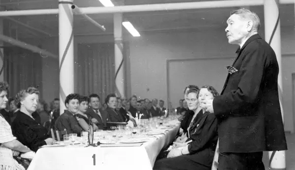 Christiania Seildugsfabriks jubileumsmiddag. Stian Løvold Olsen takker på pensjonistenes vegne.
