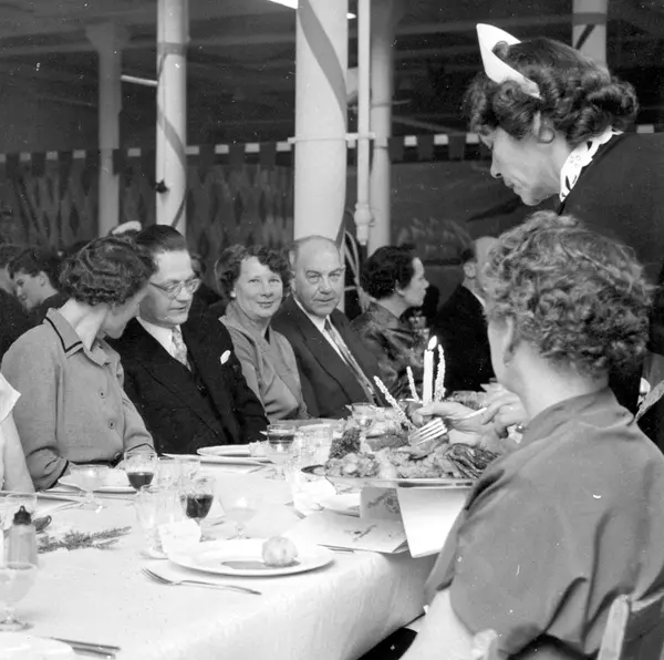 Christiania Seildugsfabriks jubileumsmiddag. Steken serveres ved bord nr. 4.