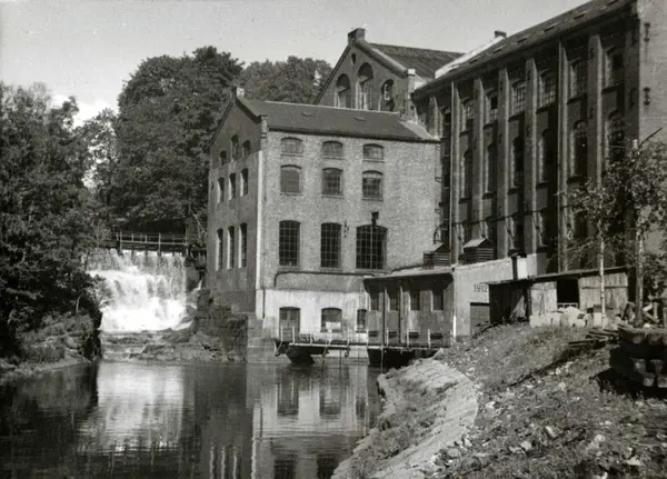 Fortex A/S. Christiania Seildugsfabrik. Fabrikkbygninger, elva og fossen.