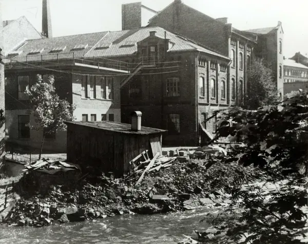 Fortex A/S. Christiania Seildugsfabrik. Bygninger og elvebredden.