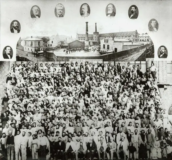 Personalalbum fra Christiania Seildugsfabrik, påbegynt i 1956. Arbeidere og funksjonærer i 1878.