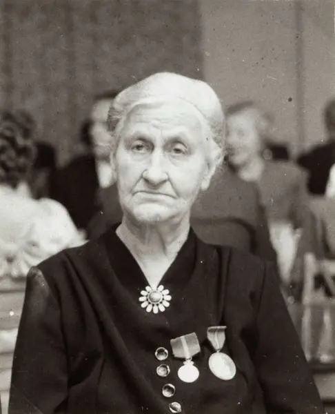 Personalalbum fra Christiania Seildugsfabrik, påbegynt i 1956. Portrett av Karoline Eriksen, linrommet. Født 27.05.1877. Ansatt 1898. Pensj. 1950.
