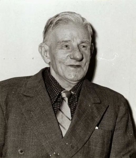 Personalalbum fra Christiania Seildugsfabrik, påbegynt i 1956. Portrett av Eugen Olsen, hekleriet. Født 28.01.1882. Ansatt 1901. Pensj. 1950.