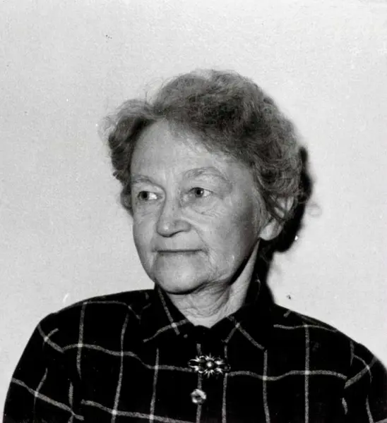 Personalalbum fra Christiania Seildugsfabrik, påbegynt i 1956. Portrett av Ragnhild Enersen, juteveveriet. Født 10.09.1885. Ansatt 1904. Pensj. 1949.