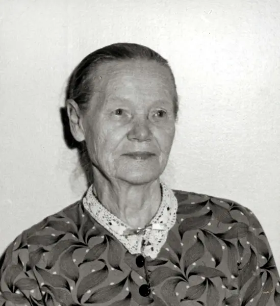 Personalalbum fra Christiania Seildugsfabrik, påbegynt i 1956. Portrett av Pauline Johansen, linveveriet. Født 01.05.1874. Ansatt 1914. Pensj. 1940.
