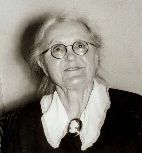 Personalalbum fra Christiania Seildugsfabrik, påbegynt i 1956. Portrett av Olga Johansen, jutespinneriet. Født 23.01.1884. Død 20.08.1957. Ansatt 1917. Pensj. 1948.