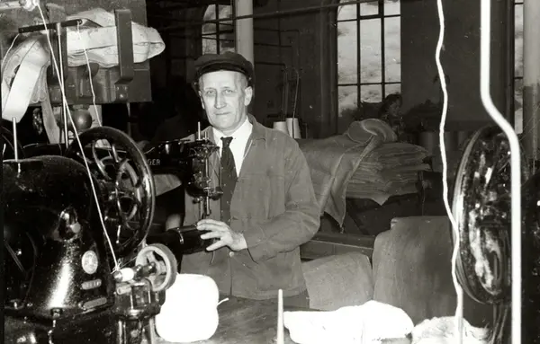 Personalalbum fra Christiania Seildugsfabrik, påbegynt i 1956. Portrett av Olav Pedersen, formann i sekkesømavdelingen. Født 25.02.1893. Ansatt 16.03.1925. 32 års tjeneste 1957.