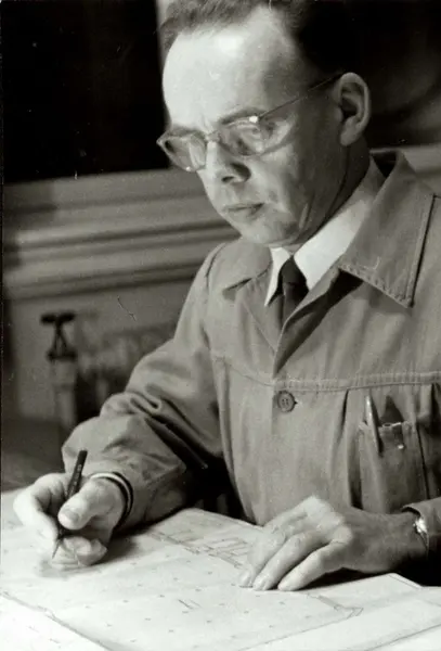 Personalalbum fra Christiania Seildugsfabrik, påbegynt i 1956. Portrett av maskinmester Sverre Christensen. Født 26.11.1901. Ansatt 18.05.1929. 28 års tjeneste.