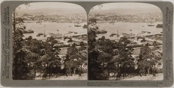 Stereoskopi. Utsikt over Oslo havn sett fra Ekeberg.