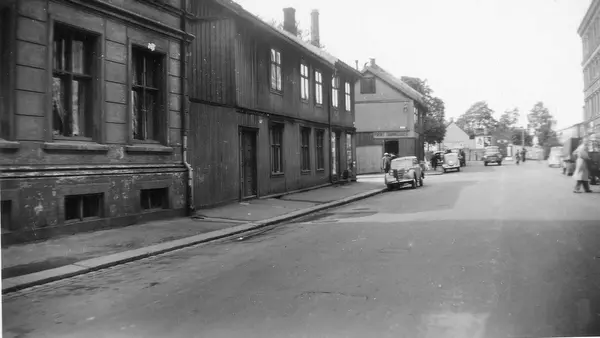 Fra serie fotografier med motiver fra gatemiljø og bebyggelse i Oslo, de fleste antakelig tatt på 1950-tallet. Bildene har tilhørt tre søstre som bodde i Sørligata på Tøyen i Oslo.