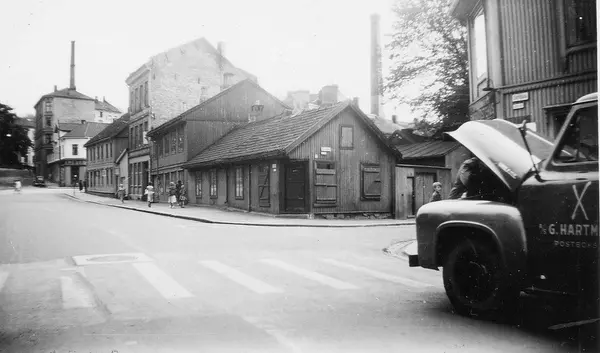 Fra serie fotografier med motiver fra gatemiljø og bebyggelse i Oslo, de fleste antakelig tatt på 1950-tallet. Bildene har tilhørt tre søstre som bodde i Sørligata på Tøyen i Oslo.