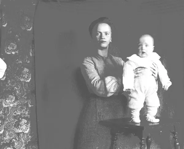 Kvinne med barn, Margrethe Q. Wiborg med Halvor Nicolai, Munkedamsveien 3, Oslo, 1903.