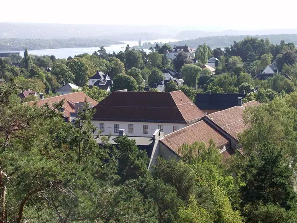 Utsikt fra toppen av stavkirken mot Hovedbygg, bygning.nummer 316.